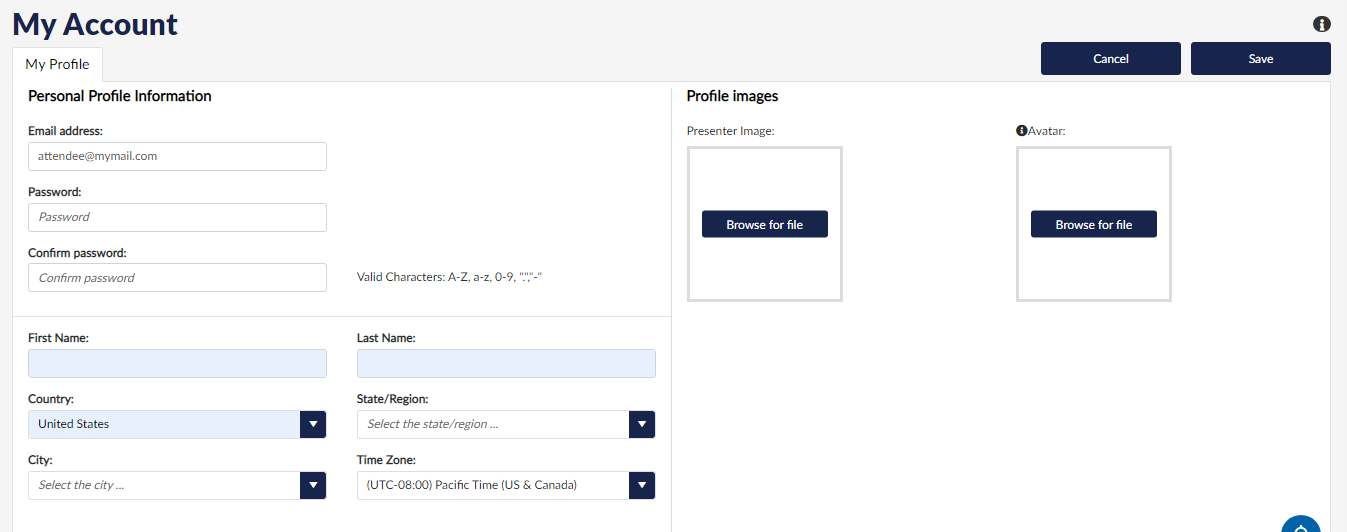 There are two types of images a Host or Co-Presenter can upload under their user account profile. They are: