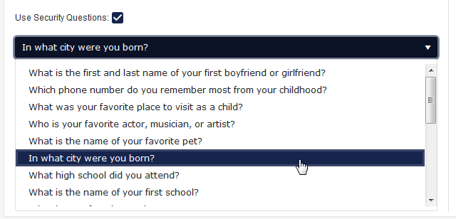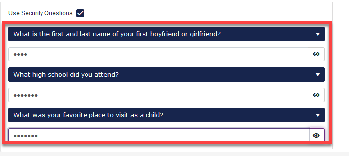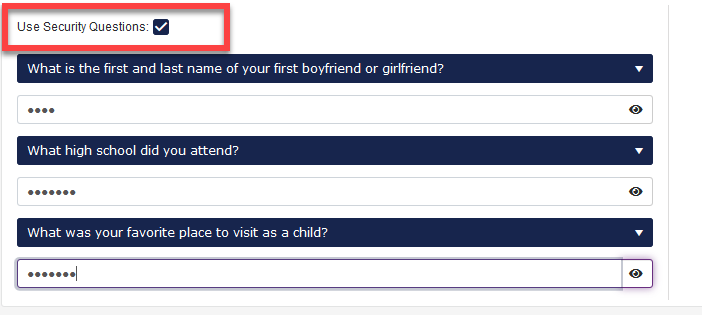 3. Once three questions and answers have been selected and answered, you can use the online password reset option should you need to reset your password in the future.