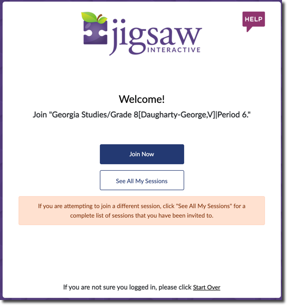 - Clicking on the Session Link provided by the host and logging in using your Jigsaw credentials
