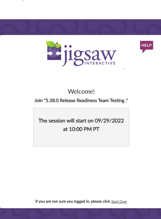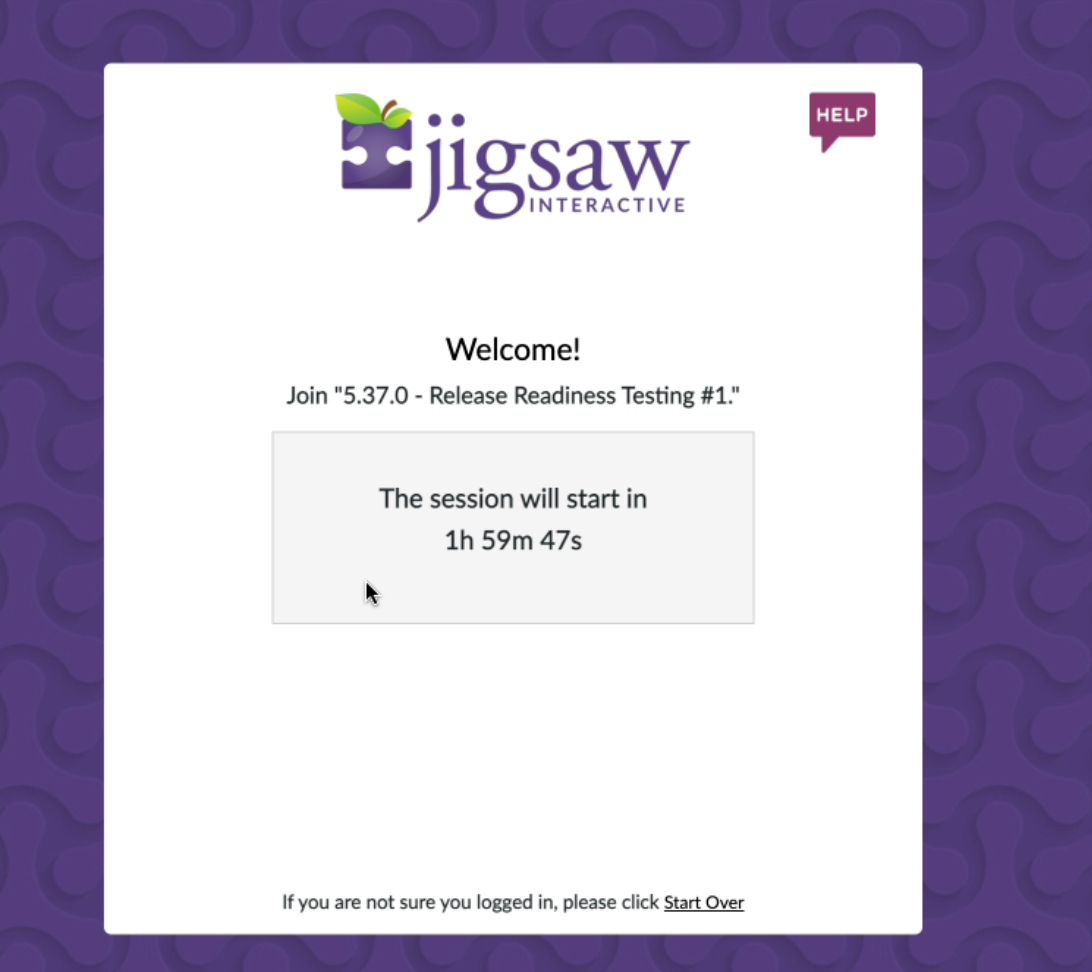 If you click a link to join a session and it does not ask for your email address, this means you (or someone else) is already logged into Jigsaw. If you are unsure the login belongs to you, click the 'Start Over' that appears in the message 'If you are not sure you logged in, please click Start Over' to return to the login screen. This will log the account out of Jigsaw. You can then click the link again, or log in and select the session from the My Sessions page to join.