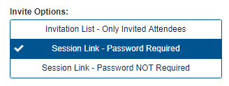 The Invite Options allows you to select how to invite attendees to the session. There are three options available.