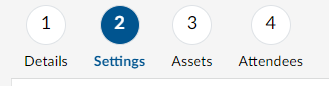 Once all the session details are set, select Step 2 (Settings)