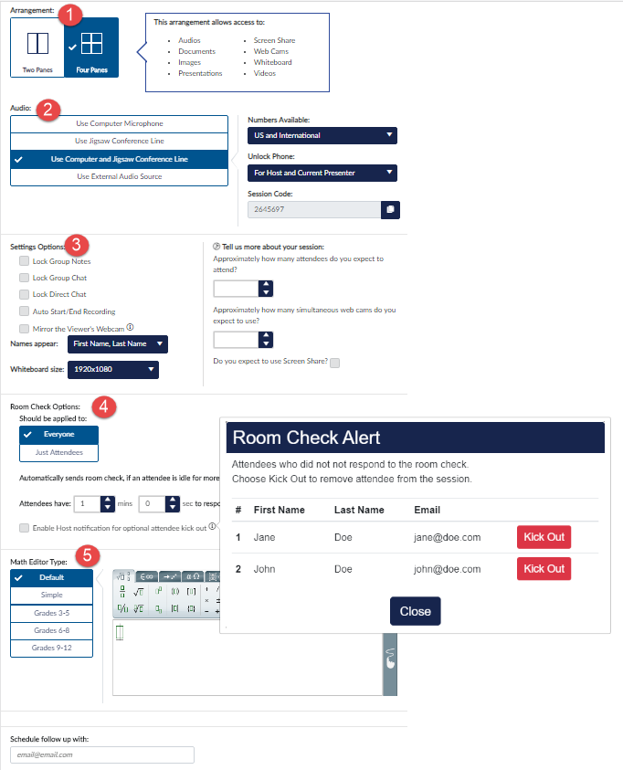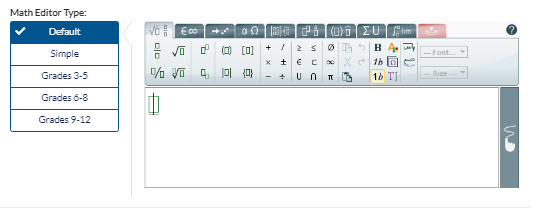 When setting up a session, select the level of the Math Editor needed for the session. Options include: