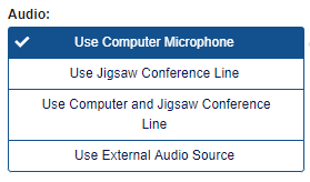 Allows both Computer Audio and Jigsaw Conference Line Audio in the same session