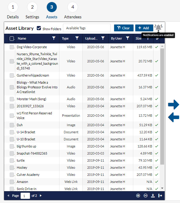 Once all the assets have been added to the session, select Step 4 (Attendees)