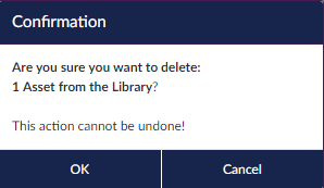 3. You will be asked to confirm that you want to delete the asset(s). Click OK to delete the asset(s). Click Cancel to cancel the action.