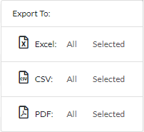 You can export a list of all or select assets to an Excel, CSV, or PDF file.