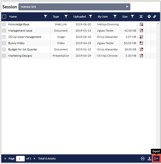 Once you have assigned a list of assets to your session, you can export that list as a Excel, CSV, or PDF file to your computer.