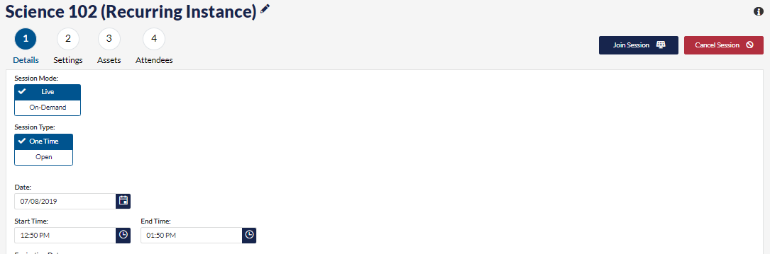 2. This will take you to the Details screen.  In the upper right-hand corner, click Cancel Session.
