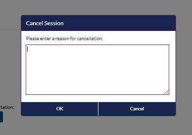 3. Enter a reason for cancelling the session and click OK.