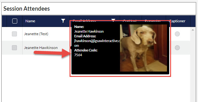 1. Hover Tip over Attendee's Name under the Session Attendees list on #4 Attendees when Editing a Session