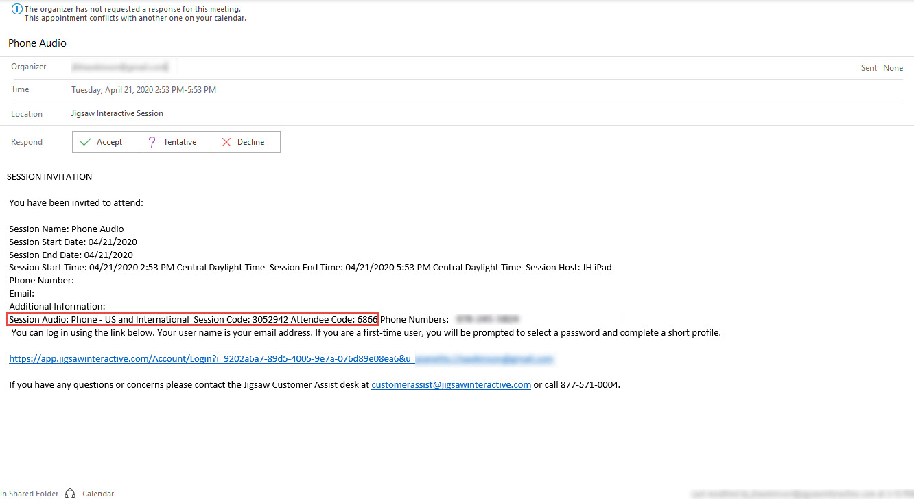 After joining the Jigsaw session, dial into Integrated Conference Line as outlined above.