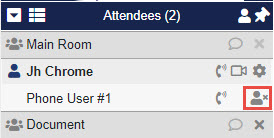 2. The gray telephone icon appears to the right of your name in the attendee list.