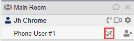 The Host and/or Co-Host may disable the phone attendee's audio at any time by simply clicking on the phone icon. The phone icon will appear with a line through it showing it is disabled. To enable it back, the Host/Co-Host will simply click the phone icon again and the phone user will be heard again.
