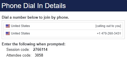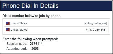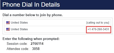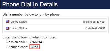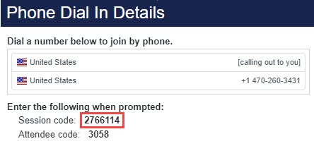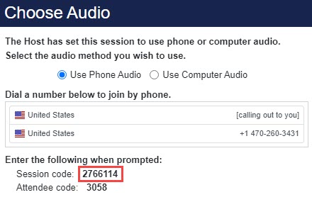 If attendees will be joining the session via telephone only, no computer, then the Phone Only instructions will appear when attendees join.