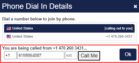 If a company has opted to use the Call Me feature, the user will see "[calling out to you]" as one of the available listings in the Choose Audio pop-up window.