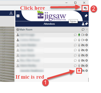 4. You may have to exit then reenter the session or just click the microphone next to your name in the Attendees List to "refresh" the page. The red 'x' should now be gone.