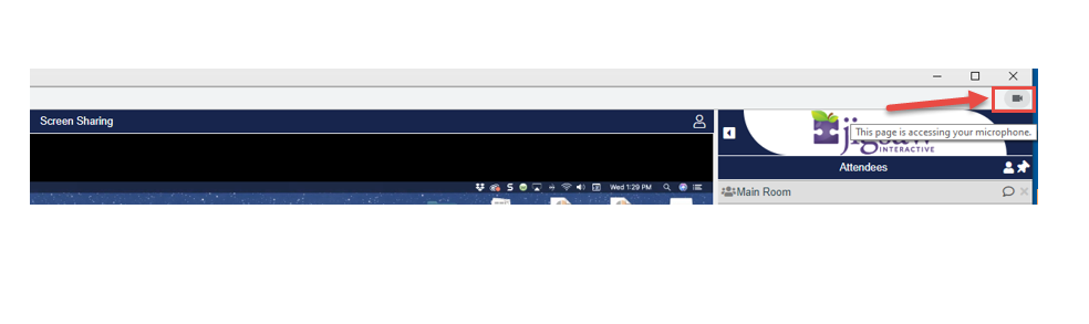 2. You may notice an image of a camera with a red 'x' either at the end of the address bar or in the bar right above the Attendees List. Click that camera icon.