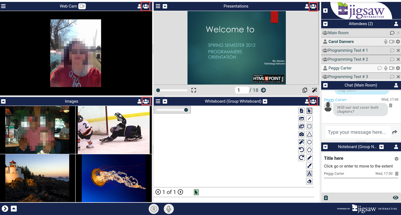Each pane and window in the Side Panel has a Minimize/Maximize Me icon. This appears as an individual person icon. This maximizes or minimizes the panes or windows for the individual attendee. If the icon is filled in, click to Maximize.