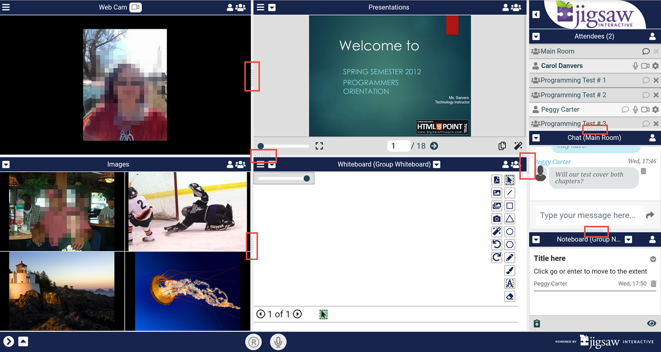 Resizing panes in your Jigsaw session on a Tablet function the same as a session on a Desktop or Laptop computer.