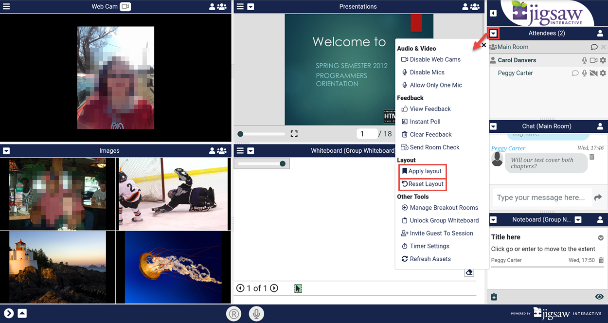 As the Host/Co-Presenter, you can click on the Global Attendee Options menu and select Apply Layout for this new layout to appear for all in the session.