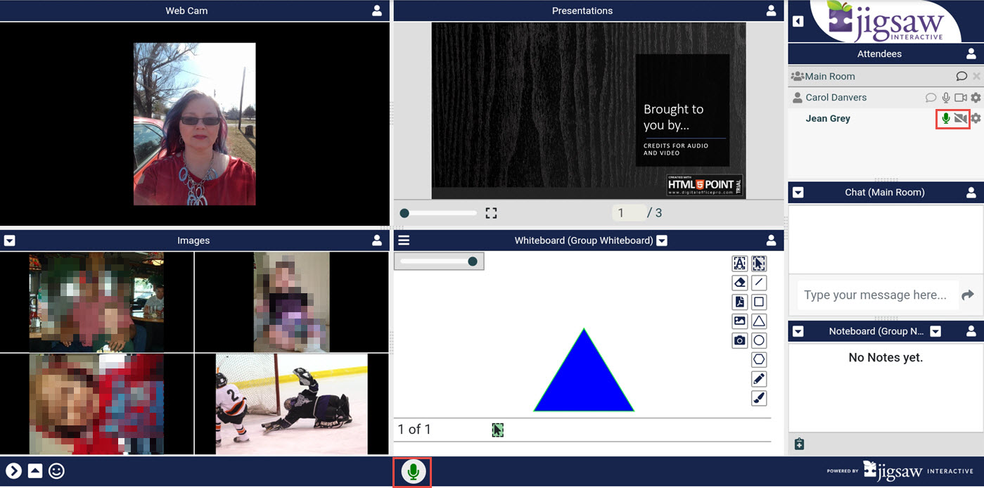 Your microphones and web cams will work the same as they do in the Main Room of Jigsaw.  One thing to note is that whatever state your mic and web cam are in at the time you move from the Main Room to the Breakout Room, will be the state the device is in in the Breakout Room.