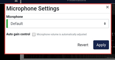 Clicking this option opens a pop-over that allows you to change your microphone selection during the session.