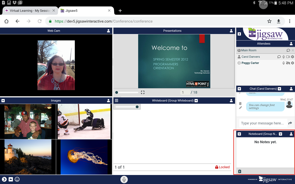 The Noteboard function basically the same as it does in the Desktop version of Jigsaw. The only difference is that the Tablet's keyboard slides up from the bottom and the Noteboard box moves above the keyboard in the side panel so you can see the text as you type.