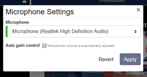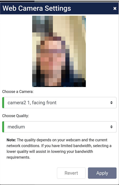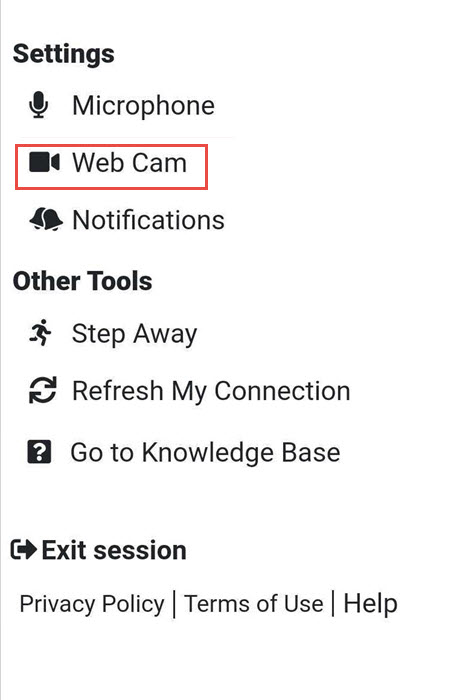 The Microphone and Web Cam settings allows the attendee to select the microphone and web cam to use during the session.