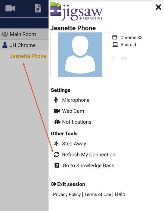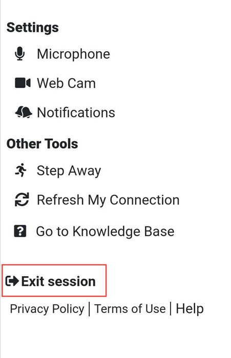 If the session freezes, the host adds assets, or there is a loss of connectivity, the attendee can attempt to reset the connection by clicking this option. It will refresh the connection. If this does not fix the issue, the attendee can attempt to leave the session and rejoin after a minimum of 3 minutes.