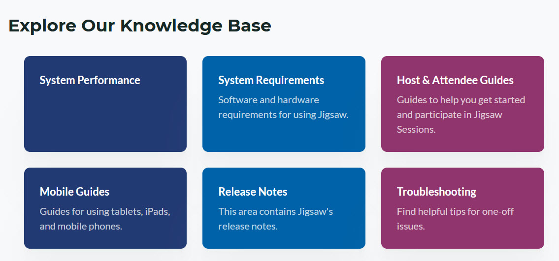 This option will send the attendee to the Jigsaw Knowledge Base where Help Articles are located.