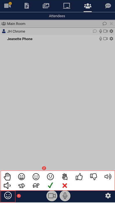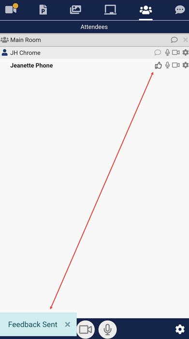 Attendees are able to provide feedback during the session. Click on the Smiling Face in the bottom right of the session then select the appropriate Feedback Emoticon.