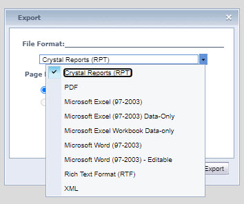When opening each report individually, you will find a menu bar across the top of the report. You can export the individual report by choosing the Export icon for more export options.