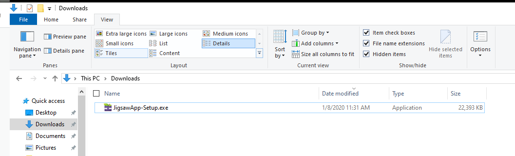 5. Click JigsawApp-Setup.exe located at the bottom of the window or Double click JigsawApp-Setup.exe in the Downloads folder.