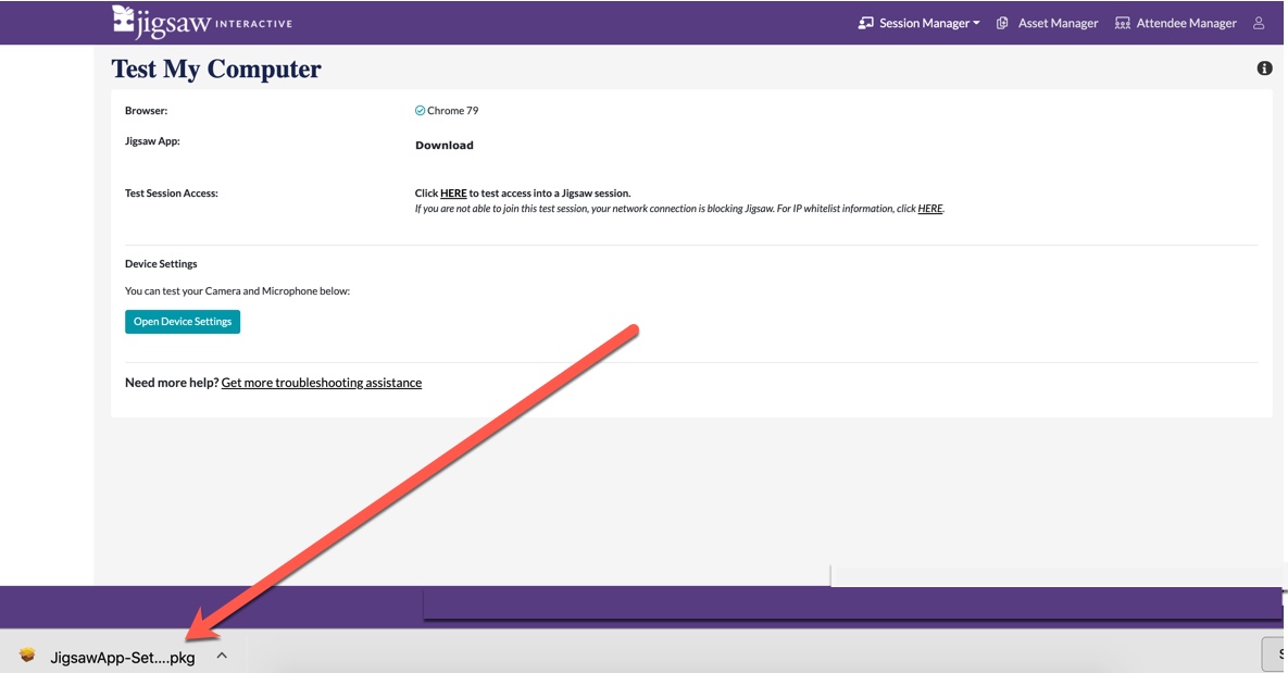 5. Once the download is complete, locate downloaded file. Run the downloaded file from your browser downloads by clicking the file name (JigsawApp-Setup.pkg).