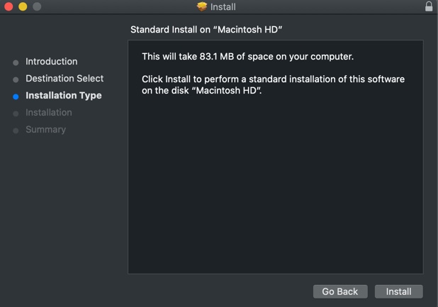 8. The install process will confirm your install location with the space needed.  Click Install if no changes need to be made.
