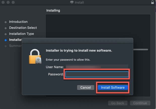 9. You will need to enter your Administrator password to proceed.  This is the same password you use to sign on to your Mac computer.