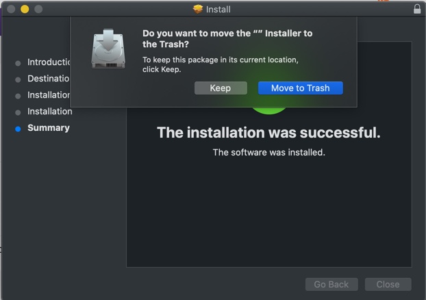 12. You will be asked what you want to do with the Install File.  You can choose to Keep it in your Downloads or move it to Trash.  This is your personal preference.