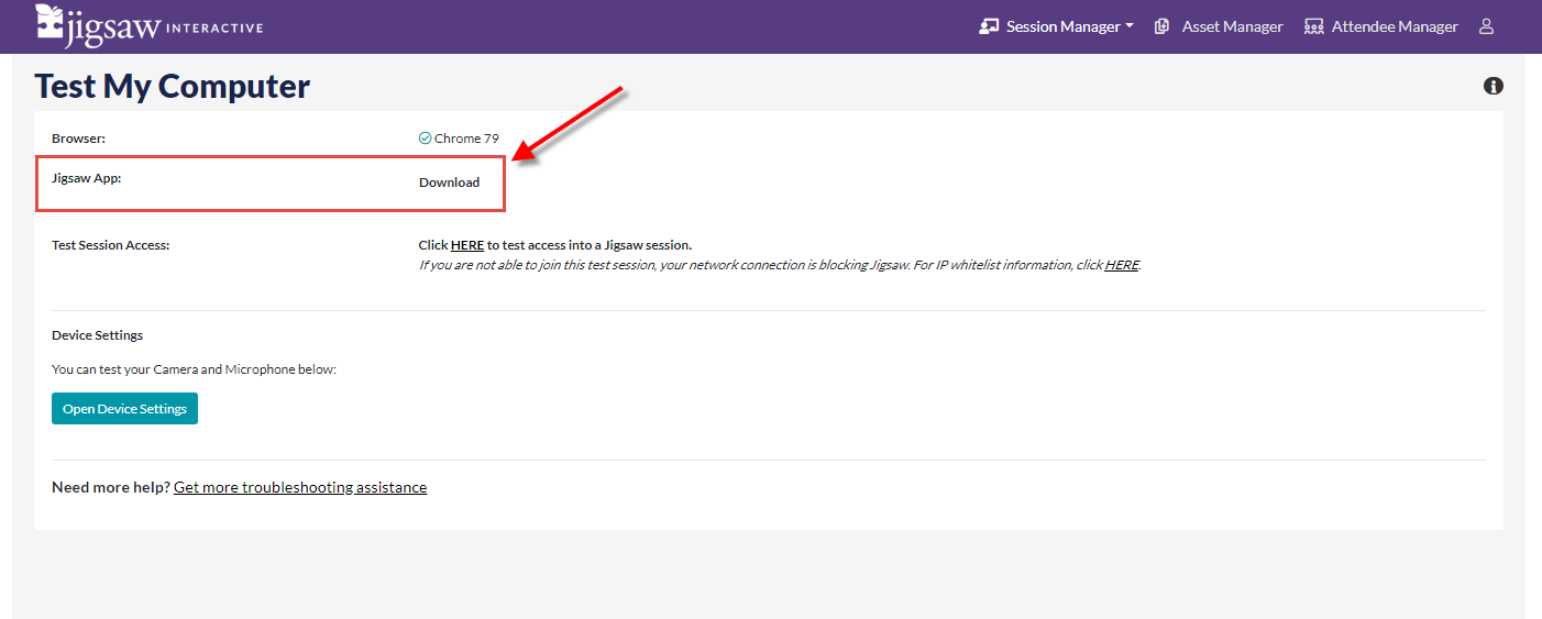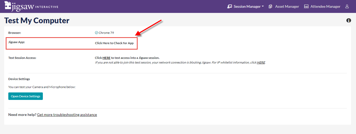 These steps will show you how to access the Jigsaw App from the Test My Computer screen.