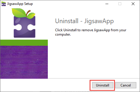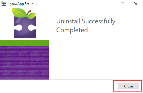 5. When finished, click the Red Close button in the upper left corner of the window.  The Jigsaw App is now uninstalled.