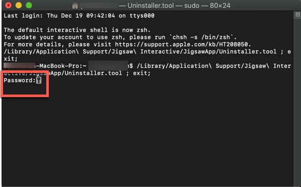 4. The Uninstall process will begin.  You will be asked to enter your password.  You will type it when the Password option appears on the screen.