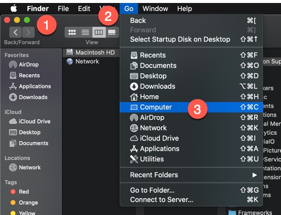 • First, click on Macintosh HD (or the name of your computer's Hard Drive)