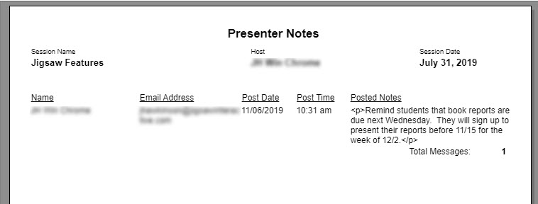 The Presenter Notes includes all notes shared on the Presenter Noteboard.
