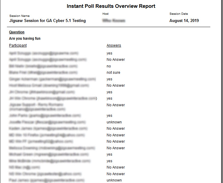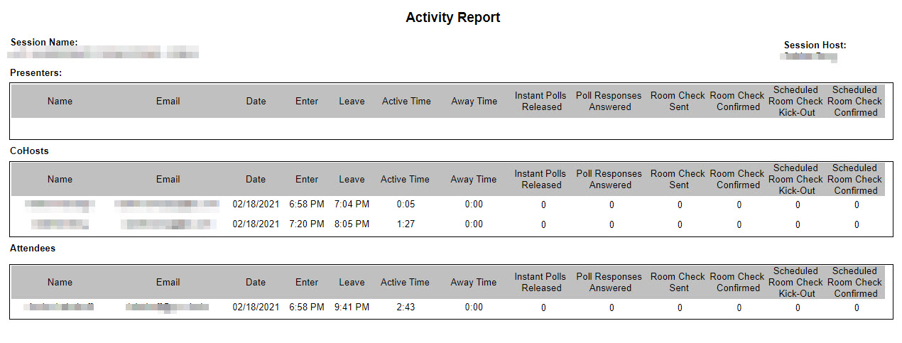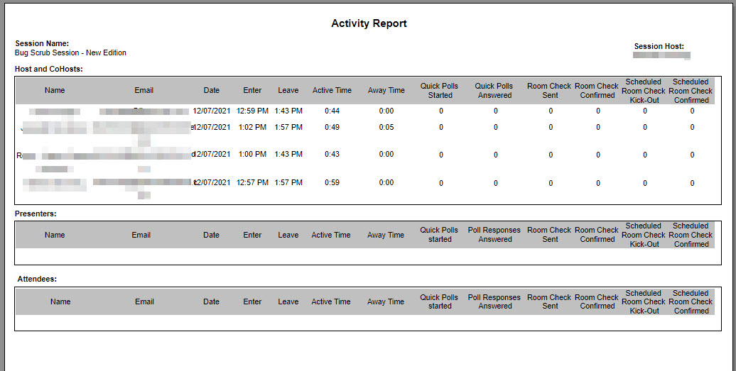 The session Host (the person who created the session) can view and export reports. Reports available include: