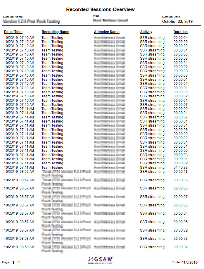 Attendee Name - who downloaded or streamed the recording