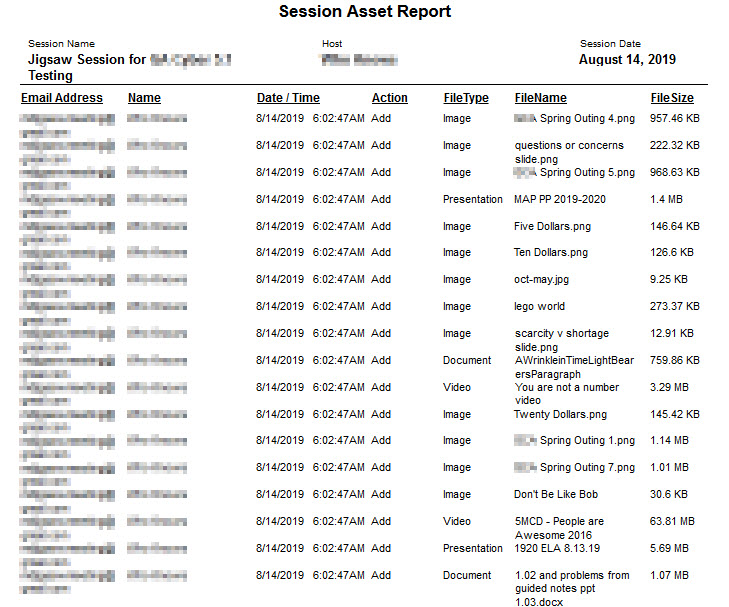 Session Asset Report