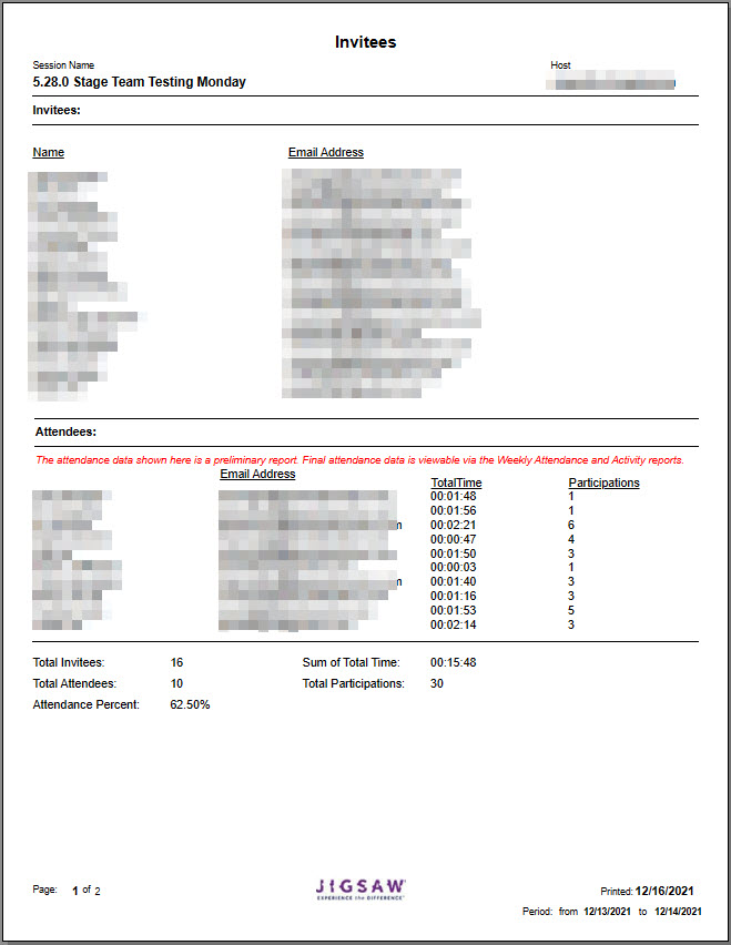 This article will explain and show examples of each report available. Visit Jigsaw Interactive - Reports for more information, including how to run the reports.
