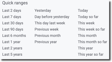 Using the available "Quick Ranges" is the easiest way to filter dates. Simply choose the range you want from the list:
