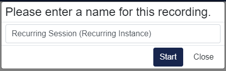 2. Give the recording a name and click Start. You can either enter a name or leave it blank to use the name of the session.