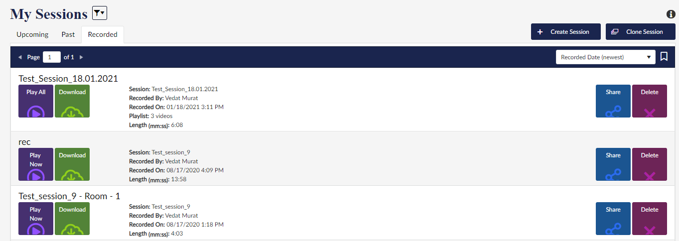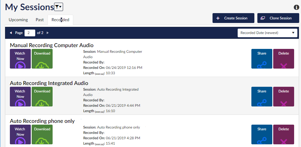 2. From here you can see all of your recorded sessions.